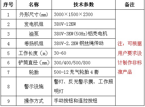 SJT0.3-Ⅱ型牽引式地下管道清淤機主要技術(shù)參數(shù)