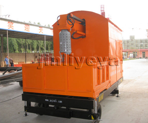 本產(chǎn)品為拖拉牽引式,設(shè)備下方裝有移動輪,它不與牽引車固設(shè)為一體,可以多臺清理裝置同時工作,共用一臺牽引車,降低成本。該設(shè)備由發(fā)電機組、液壓總成、卷揚機組、電氣系統(tǒng)、移動輪、淤泥鏟筒、自卸式淤泥裝載箱等組成。